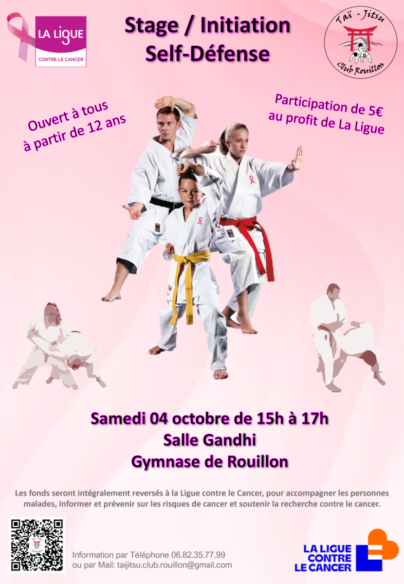 Venez pratiquer avec nous le samedi 04 octobre de 15h à 17h et apporter votre soutien à la Ligue contre le Cancer